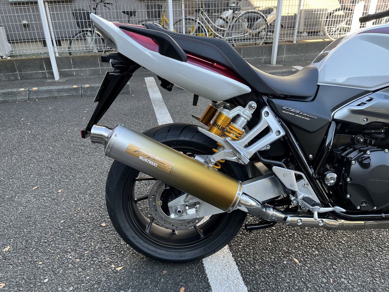 マフラーのこの色がたまりません!リアサスペンションとフロントフォーク、そしてマフラーの色の