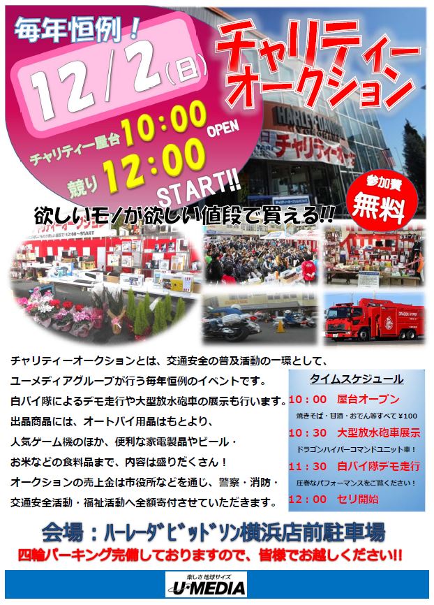 毎年多くのお客様にご参加頂いている、チャリティオークションは 日頃の感謝と、交通安全を祈願して続けているイベントです。